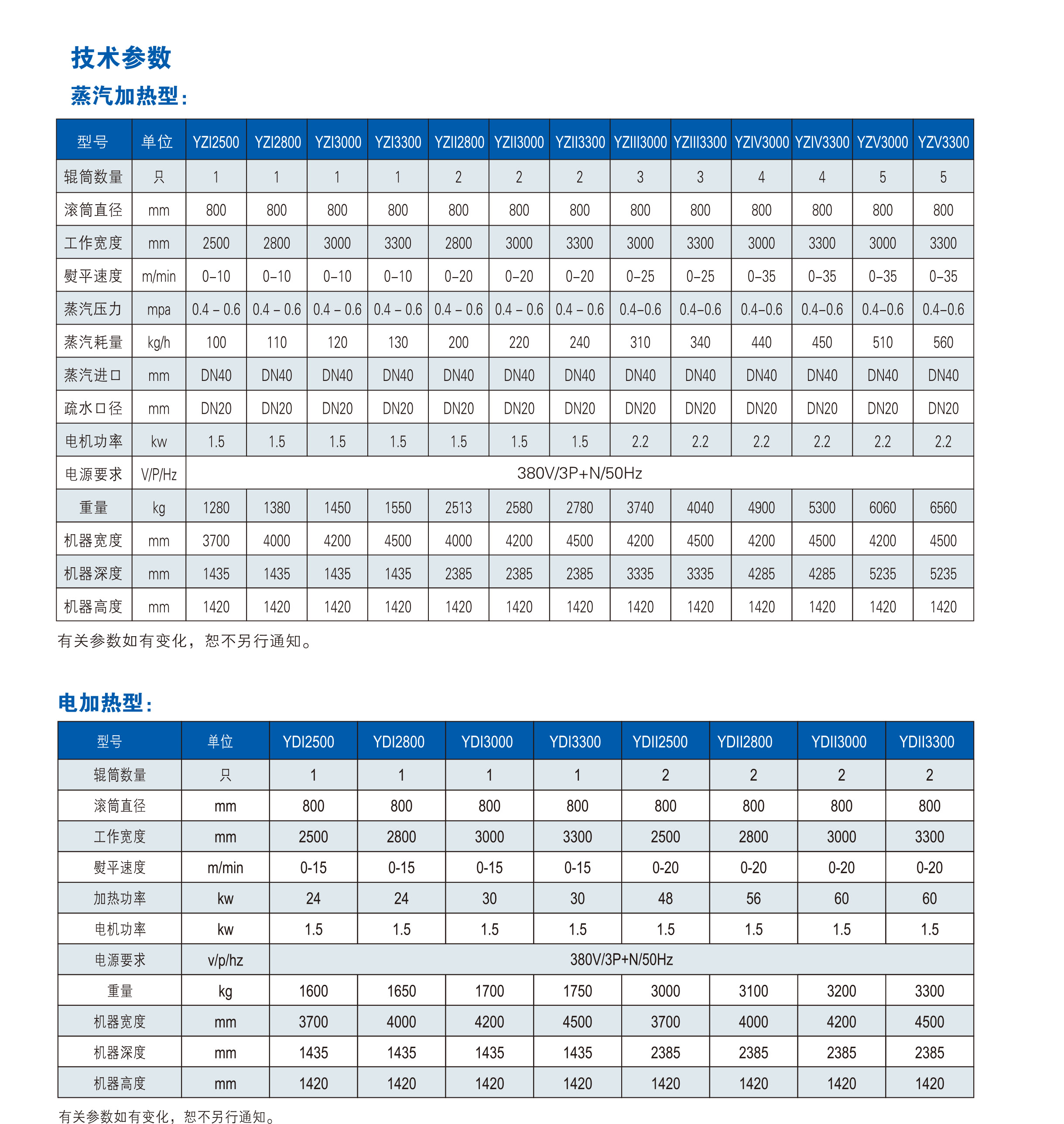 有多種燙平機(jī)可供選擇,輥筒直徑800mm,輥筒數(shù)量有單輥、雙輥、三輥、四輥、五輥、六輥等,熨平寬度有2.5米、2.8米、3米、3.3米,加熱方式:蒸汽加熱及電加熱方式。