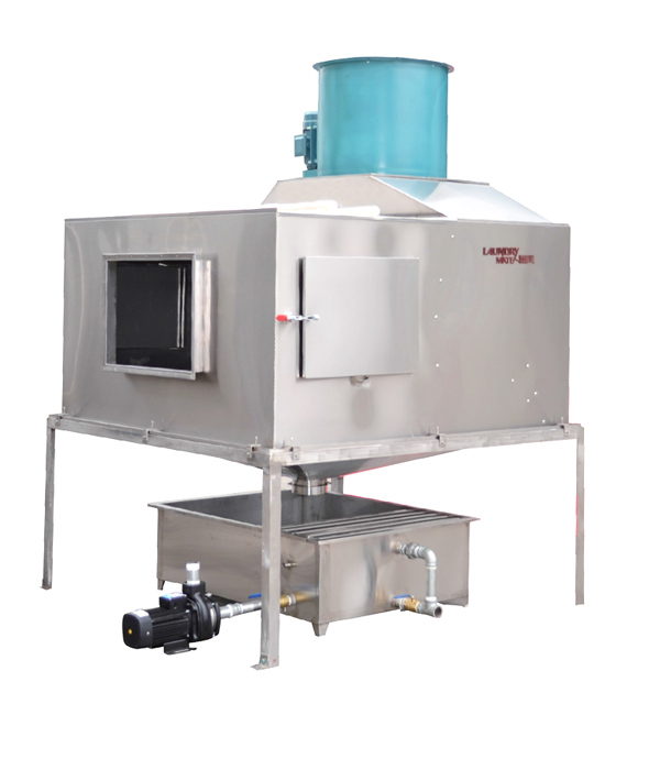 毛絨收集器主要用于收集烘干機在烘干布草的過程中排出來的毛絨,避免了烘干機管道毛絨積壓造成堵塞,極有可能引起燃燒造成火災,形成極大的安全隱患。還可以阻止毛絨漫天飛舞,清潔空氣,保護環境。廣泛應用毛絨清除工業環境的理想設備,毛絨收集率可達到95%以上,FB-13濕式毛絨收集器最高排風量13000CFM(22000M3/h),同時可根據客戶的實際需求加工定制流量在10000M3/h-66000M3/h。 FB-13濕式毛絨收集器可連接一個或多個干衣機。設有獨立的維護門便于維護;全不銹鋼結構;采用優化噴淋結構:多路噴淋管結構,壽命長,噴淋效果好,毛絨捕集更多;無障礙噴嘴:減少維護,壽命更長;易于安裝:傳統方形結構,易于布局,水循環系統可以根據需求隨意安置。